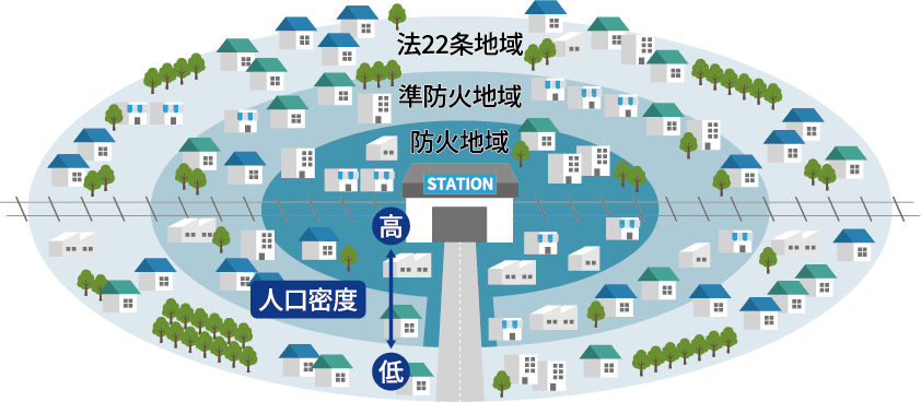 防火地域・準防火地域・法22条地域とは、火災時の被害を最小限に抑えるために指定された区域であり、建築物には高い耐火・防火性能が求められます。